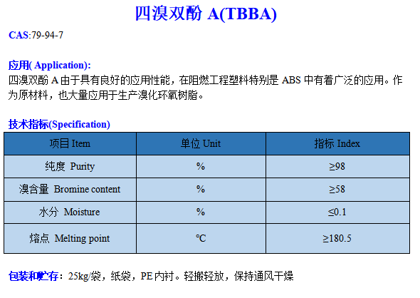四溴双酚A(TBBA) 2022-9-5 本文被阅读 1900 次