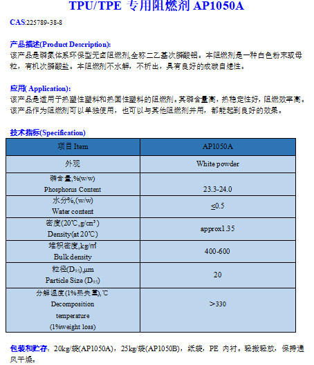 TPU/TPE专用阻燃剂AP1050A 2022-12-14 本文被阅读 2281 次