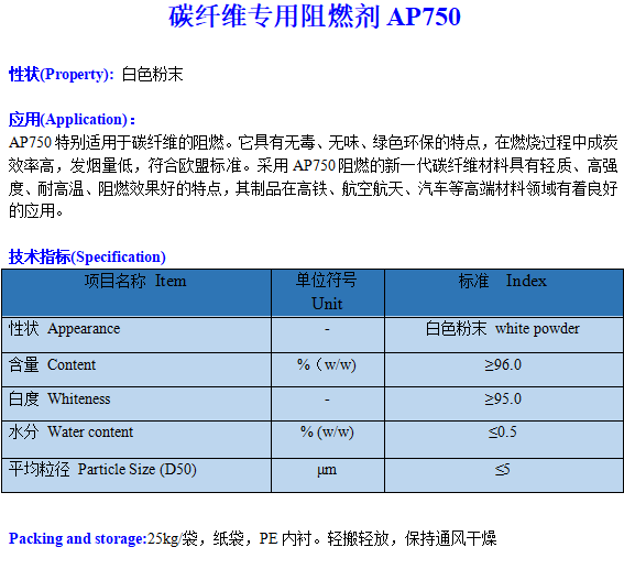 碳纤维专用阻燃剂AP750 2022-5-10 本文被阅读 3125 次
