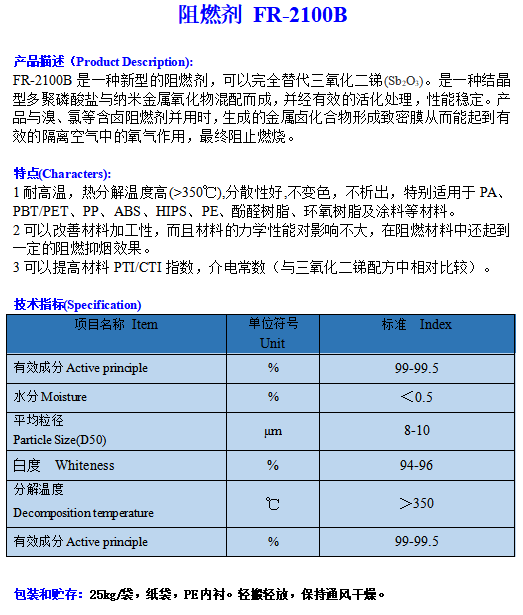 阻燃剂 FR-2100B 2022-5-10 本文被阅读 3534 次