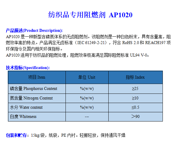 纺织品专用阻燃剂AP1020 2022-6-1 本文被阅读 3057 次